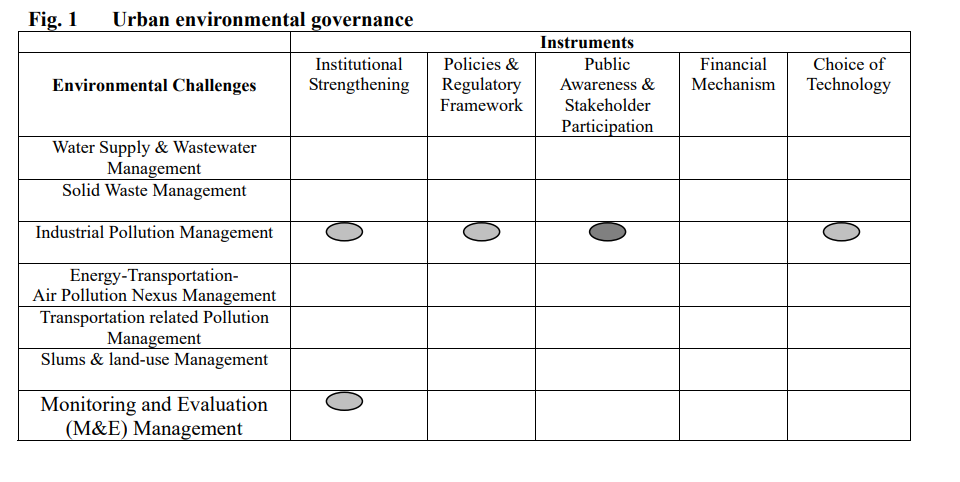 Following chart summarizes some of the efforts across the instruments of pollution (From Institution for Global Environment Strategies)
