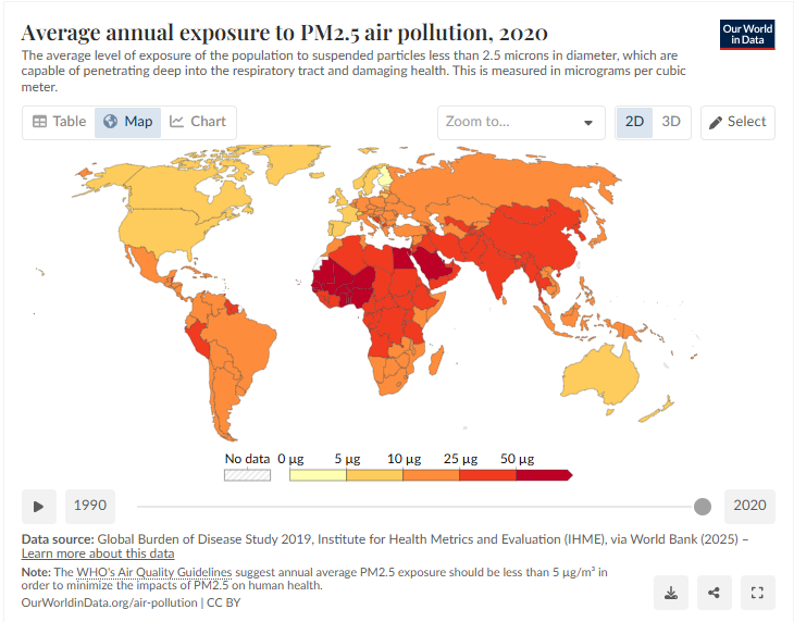 2. Looked at another way, the average annual exposure to air pollution: