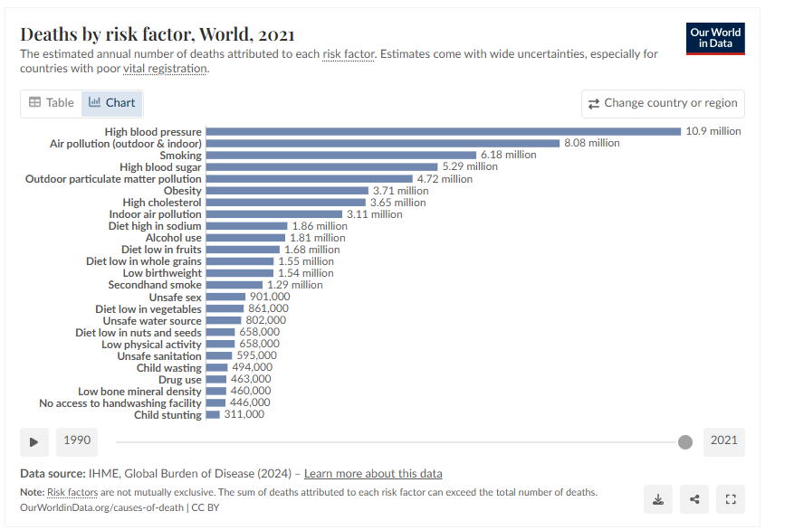 7. Air pollution is the second largest risk factor and has a high disease burden on several countries